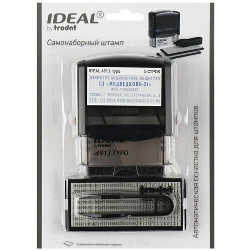IDEAL 4913/DB-2 Typo Автоматический самонаборный штамп 5 строк, 2 кассы (штамп 58 х 22 мм)