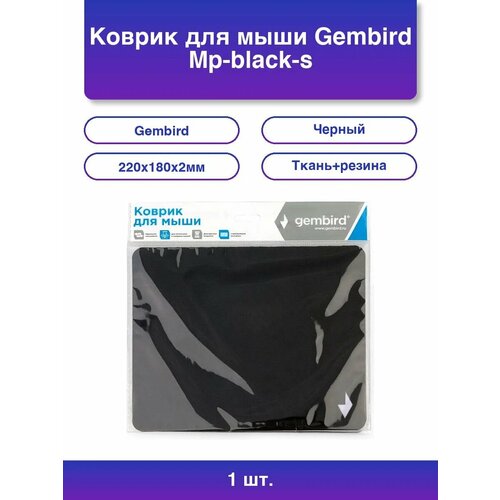 1шт. Коврик для мыши Mp-black-s черный 220х180х2мм ткань+р.