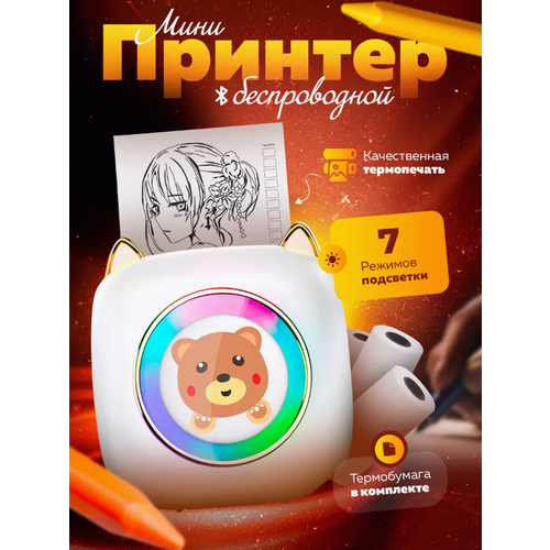 Термопринтер мини портативный медвежонок для черно-белой печати Miralda_Shop