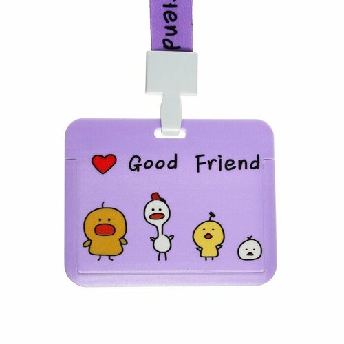 Бейдж горизонтальный внешний размер 10 х 7,8 см, внутренний размер 5,2 х 8,2 см, лента 42 см, с русунком "Уточки"