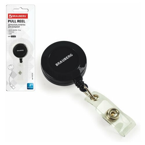 Держатель-рулетка для бейджей, комплект 30 шт, 70 см, петелька, клип, черный, в блистере, BRAUBERG, 232152