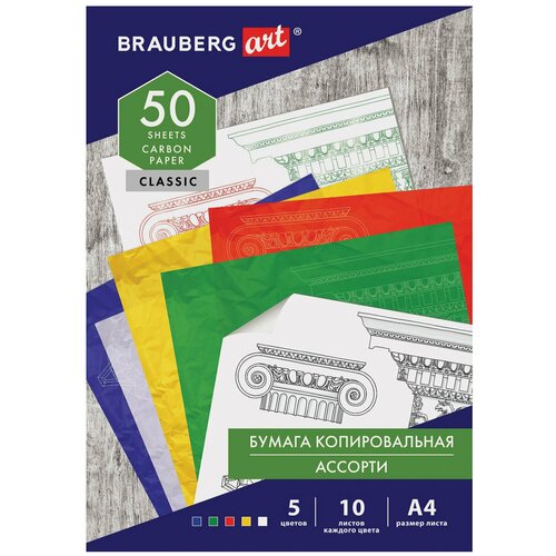 Бумага копировальная Brauberg Art Classic 5 цветов x 10 листов Blue/White/Red/Yellow/Green 112405