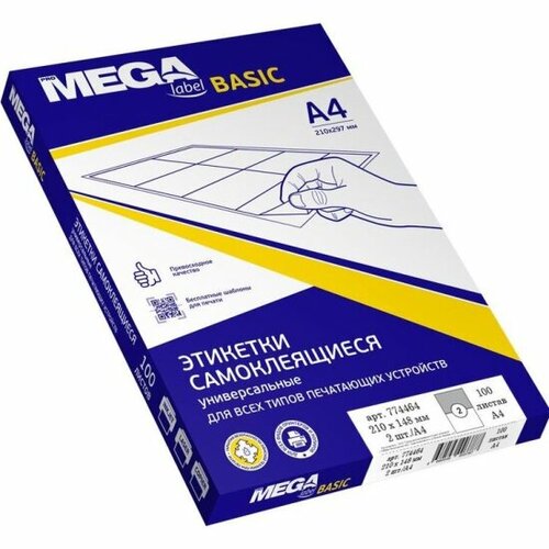 Этикетки самоклеящиеся PROMEGA OFFICE ProMEGA Label BASIC 210х148мм./2 шт. на лис. А4(100л./уп)