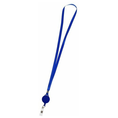 Лента для бейджа, 10 мм х 85 см, с держателем-рулеткой 40см и петлей, на кнопке, синяя