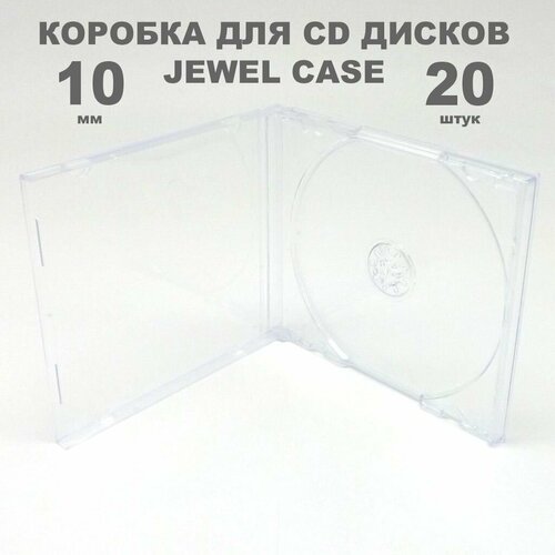 Коробка CD Jewel 1 диск / Бокс CD Jewel 1 диск прозрачный, 10мм, упаковка 20 штук