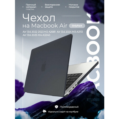 Чехол на Macbook Air 13 M2 М4 A2681 M3 A3113 M4 A3240 Черный Матовый