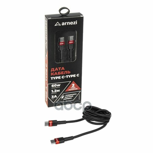 Дата-Кабель Type C - Type C (1.2М, 3A, 60W) Быстрая Зарядка, В Оплетке Arnezi A0605043 ARNEZI арт. A0605043