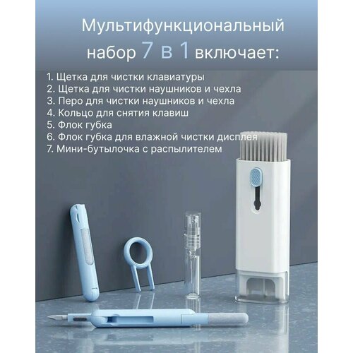 Щетка для клавиатуры и наушников 7 в 1, многофункциональный набор для чистки гаджетов, Голубой