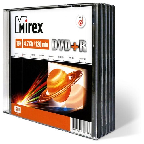 Диск DVD+R Mirex 4,7 GB 16x (5 штук в упаковке) 1 шт.
