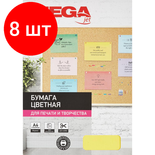 Комплект 8 штук, Бумага цветная ProMEGA Jet (А4.80г, микс интенсив) пачка 100л