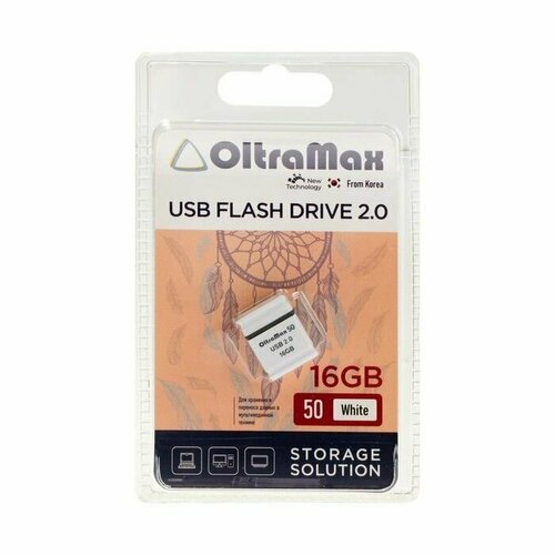 Флешка 50, 16 Гб, USB20, чт до 15 Мб/с, зап до 8 Мб/с, белая