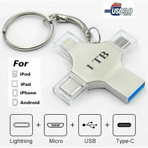 1 ТБ флешка для Iphone , андроид , телефона, планшета, разъем: micro USB, Type-C, Apple light