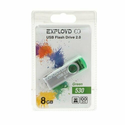 Флешка 530, 8 Гб, USB20, чт до 15 Мб/с, зап до 8 Мб/с, зеленая