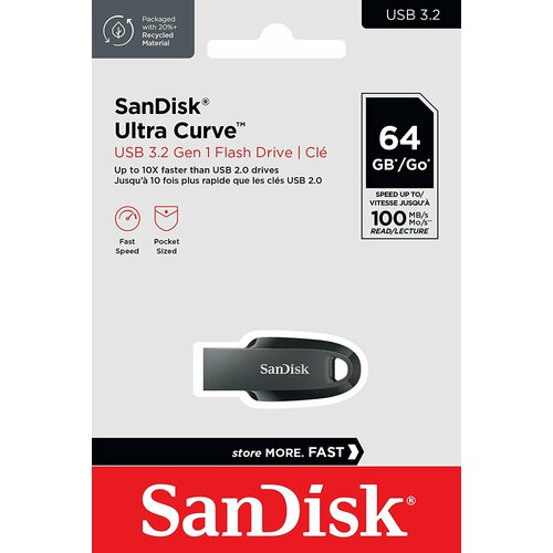 Flash-накопитель SanDisk Ultra Curve USB-A 3.2, 64GB, чёрный