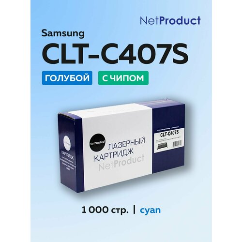 Картридж NetProduct CLT-C407S голубой для Samsung CLP-320/325/CLX-3185, с чипом