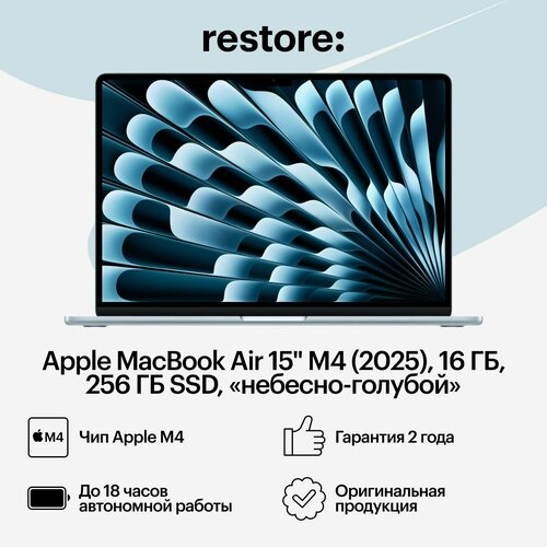 Apple MacBook Air 15" (M4, 10C CPU/10C GPU, 2025), 16 ГБ, 256 ГБ SSD, небесно-голубой
