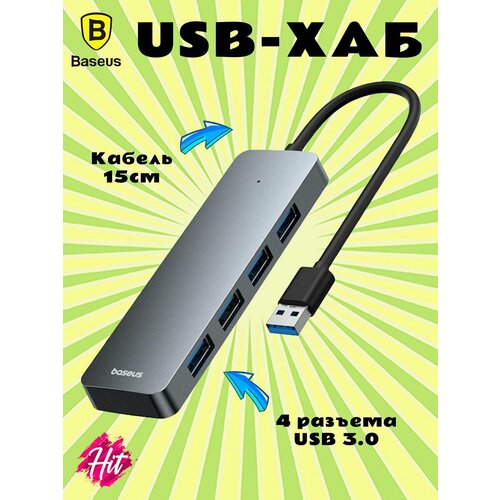 USB-хаб Baseus UltraJoy Series 4-Port HUB Lite 15см (USB на USB 3.0*4), B0005280B811-00 серый