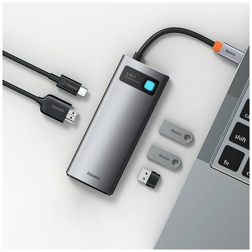 USB-концентратор Baseus Working Station Multifunctional Type-C HUB Adapter (CAHUB-BG0G), разъемов: 16, темно-серый