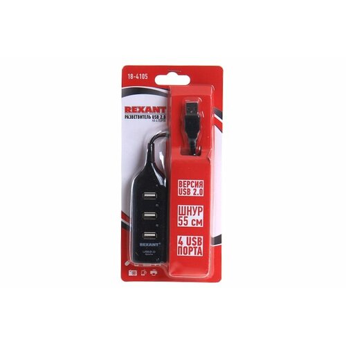 Разветвитель Rexant USB 2.0 на 4 порта {18-4105}