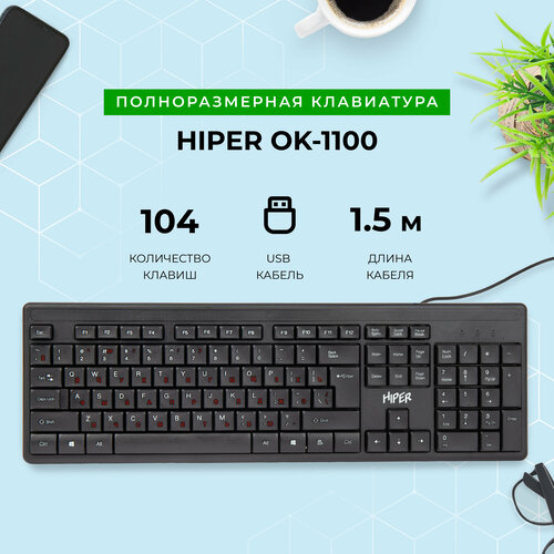 Проводная клавиатура HIPER OK-1100 / мембранная / USB / 104 клавиши / 1,5 м