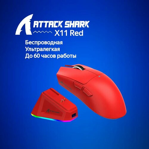Игровая мышь Attack Shark X11 Red красный USB, Радиоканал, Bluetooth