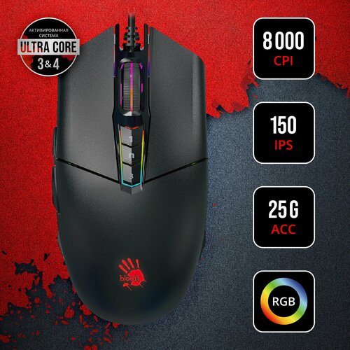 Игровая мышь проводная A4Tech Bloody P91s, 8 кнопок, подсветка, 8000 dpi
