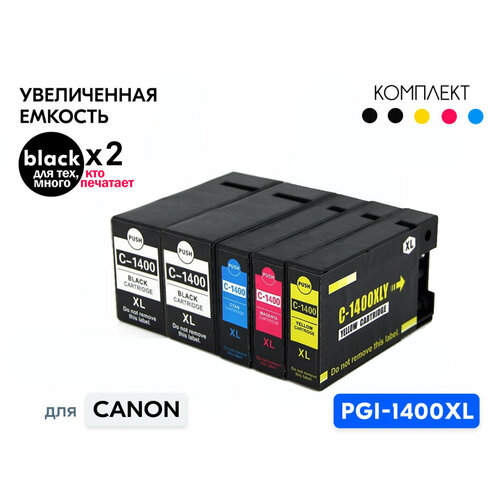 Картридж PGI-1400 XL для струйного принтера Canon MAXIFY MB2040, MB2140, MB2340, MB2740 комлект увеличеной емкости 2 черных, 3 цветных картриджа