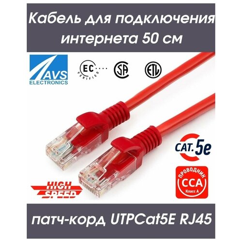Кабель для подключения интернета LAN коммутационный шнур патч-корд витая пара UTPCat5E RJ45 50 см RIPO 003-300019