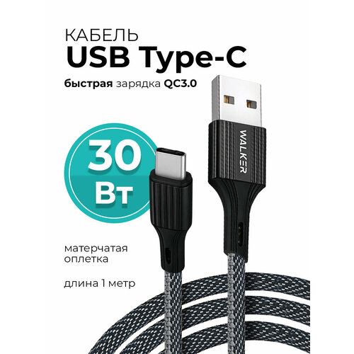Кабель USB - TypeC, 3.1А, 1м, переходник, быстрая зарядка и передача данных для телефона тайп си, провод, нейлон