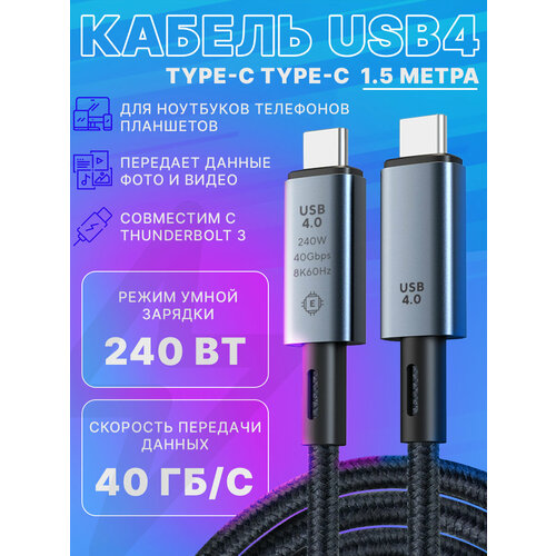 Кабель USB4 TYPE-C, 240 Вт, USB 4.0, 40 Гбит/с, 8K, 60 Гц, 150 см