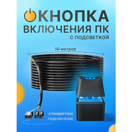 Кнопка включения компьютера внешняя механическая с подсветкой, 10 м