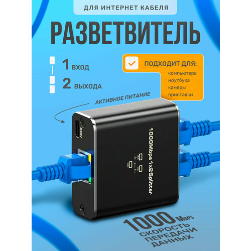 Разветвитель для интернет кабеля RJ45, сплиттер витой пары 1-2 1000 мб/с