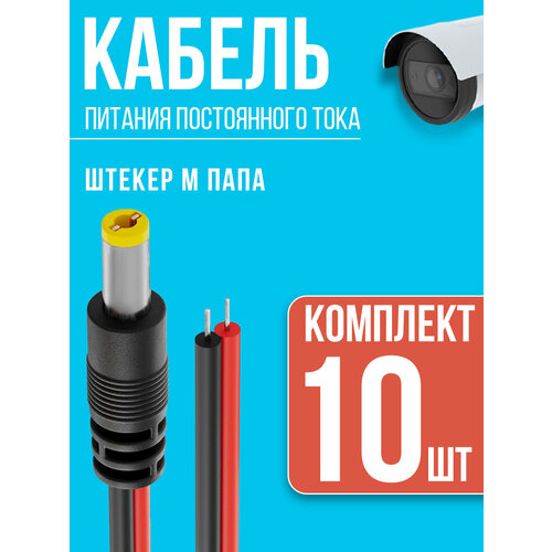 Кабель питания постоянного тока штекер DC 5.5 x 2.1 (M папа), 23 см, комплект 10 штук