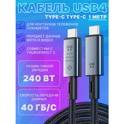 Кабель USB4 TYPE-C, 240 Вт, USB 4.0, 40 Гбит/с, 8K, 60 Гц, 100 см
