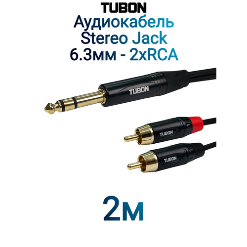 Кабель TUBON Аудио межблочный 6.3 мм jack (M) Stereo - 2 x RCA (M) OD4.0 ПВХ J2R002 2м