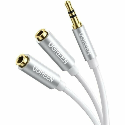 Кабель-разветвитель UGREEN AV123 (10780) 3.5 mm Aux Stereo Audio Splitter Cable with Braid (0,2 метра) серебристый/белый Silver