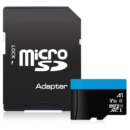 Карта памяти ADATA microSDXC 256 ГБ Class 10, V10, A1, UHS-I, R/W 100/25 МБ/с, адаптер на SD, 1 шт., черный/синий