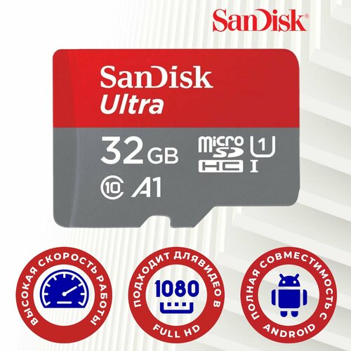 Карта памяти SanDisk microSDHC 16 ГБ Class 10, UHS-I, R 80 МБ/с, 1 шт., белый/серый