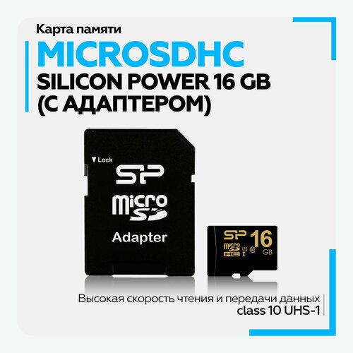черныйТип карты памяти: microSDHC; Описание: Карта памяти Silicon Power microSDHC Class 10 полностью совместима со стандартом SD 2. 0. Совместима с карт-ридерами и устройствами, поддерживающими microSDHC. C адаптером может использоваться как стандартная SDHC карта памяти. Внимание: перед оформлением заказа убедитесь в поддержке вашим электронным устройством карт памяти данного объема, , Карта памяти Silicon Power micro SDHC 16 Гб class 10 + адаптер подойдет для различных устройств. Большой объем памяти позволяет хранить на карте фотографии, музыку и другие медиафайлы. Карта памяти Silicon Power micro SDHC 16 Гб class 10 + адаптер совместима с современными телефонами и другими устройствами и значительно упрощает процесс хранения информации. Адаптер позволяет считывать карту через компьютер или ноутбук, , Чтобы на Ваше мобильное устройство или фотоаппарат помещалось много файлов, Вам нужна хорошая карта памяти. Сейчас почти все гаджеты оснащены возможностью замены карт памяти, так что карта памяти от Silicon