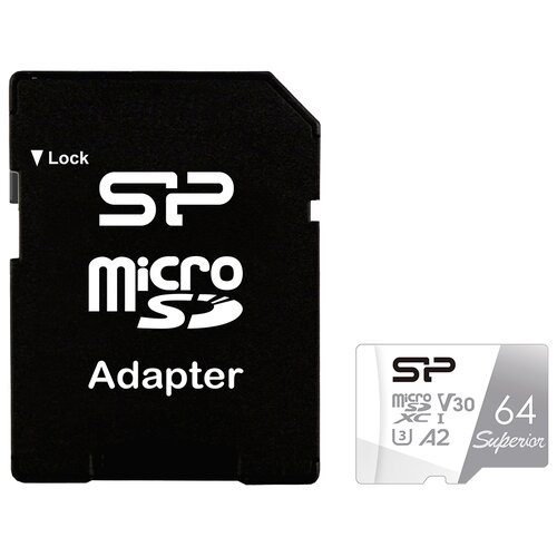 Карта памяти Silicon Power microSDXC 64 ГБ Class 10, V30, A2, UHS Class 3, R/W 100/80 МБ/с, адаптер на SD, 1 шт.