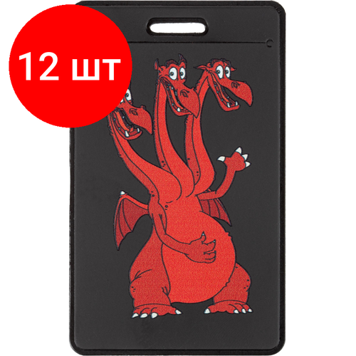 Комплект 12 штук, Бейдж Комус 104x63мм вертикальный Три богатыря Змей Горыныч экокожа