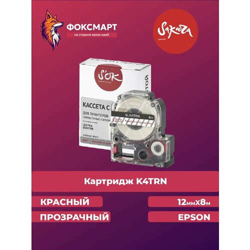 Картридж ленточный Sakura K4TRN, для Epson, ширина 12мм, длина 8м, красный шрифт, прозрачный фон