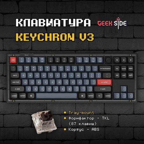 Игровая механическая клавиатура Keychron V3 (Brown Switch), TKL, RGB, Проводная, Win Mac, QMK VIA, Hotswap, Прозрачный