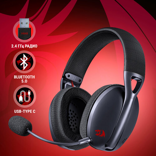 Наушники Redragon Ire Pro игровые, беспроводные, с микрофоном, Bluetooth, USB, подсветка