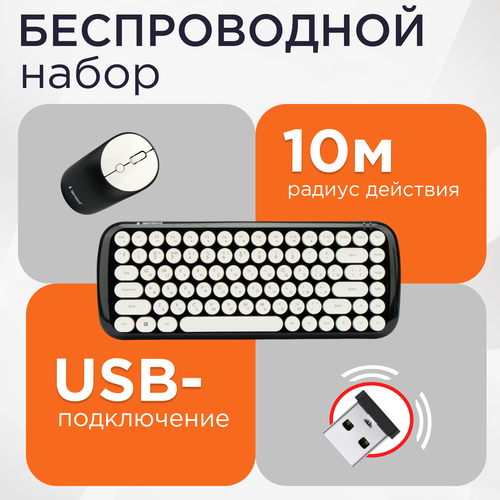 Комплект беспроводной клавиатуры и мыши Gembird черно-белая 84 клавиши/4 кнопки 800-1600 DPI радиоканал KBS-9000-BL