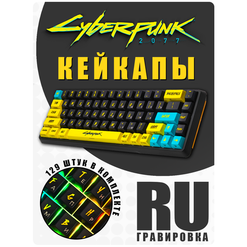 Кейкапы для механической клавиатуры CyberPunk 2077 / 129 штук в комплекте / с боковыми прозрачными буквами.