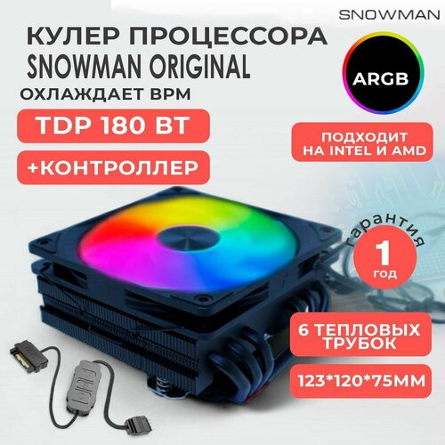 Кулер вентилятор башенный Snowman (Снеговик) MC75-6 для процессора c АRGB подсветкой