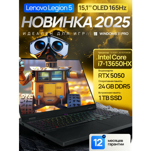 15.1" Игровой ноутбук Lenovo Legion 5 OLED Gen 10 (2025), (2560x1600), 165Hz, 130% sRGB, Intel Core i7-13650HX (4.9 ГГц), RAM 24 ГБ DDR5, SSD 1 ТБ, NVIDIA GeForce RTX 5050 (8 Гб GDDR7), Windows 11 Pro + Office 2021 Pro Plus, Русская раскладка
