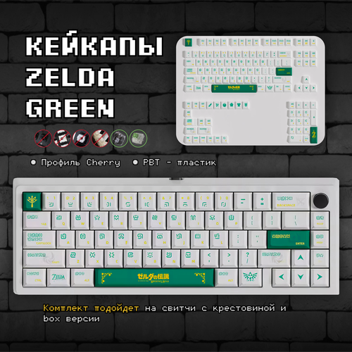 Кастомные кейкапы Zelda Green для механической клавиатуры, cherry профиль, PBT пластик