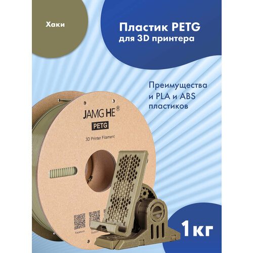 Пластик 1.75 мм для 3D печати Jamg He PETG для 3D принтеров Anycubic, Bambulab, Raise, Elegoo, Creality, Qidi, Flyingbear, 1 кг. Хаки